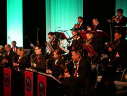 Diesem kleinen musikalischen Erlebnis ist es also zu verdanken, dass die beiden Big Bands hinterher in Kontakt geblieben sind. Bleibt noch anzumerken, dass die Trompeter der IKS Big Band immer eine Art Choreografie machen während den Stücken und wie man sich vorstellen kann, macht es besonders Spass, diese Choreografie mitzumachen, wenn man sie zum ersten Mal live und direkt auf der Bühne mitbekommt.